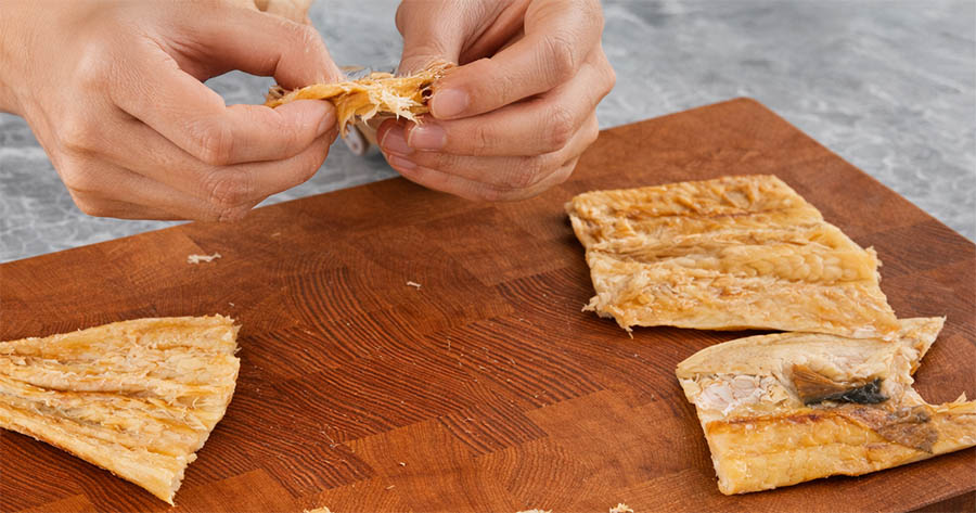 ➌ 황태의 머리·뼈·살을 완전히 분리합니다