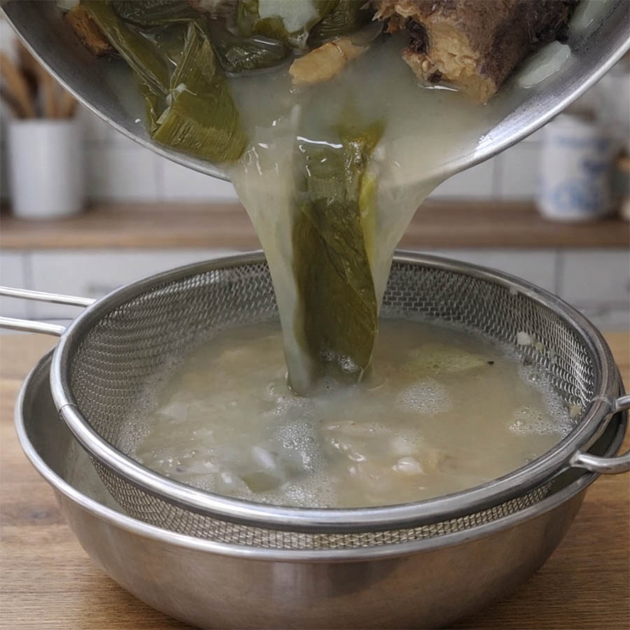 ➐ 육수는 체에 쳐 두 번 거릅니다