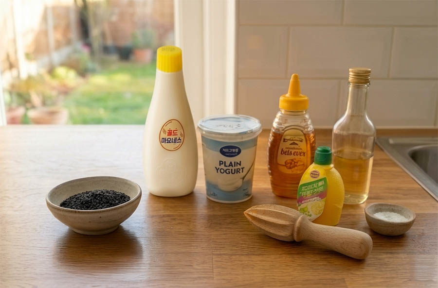 ◾ 준비물│검은깨, 마요네즈, 요거트, 꿀, 레몬즙, 식초, 소금