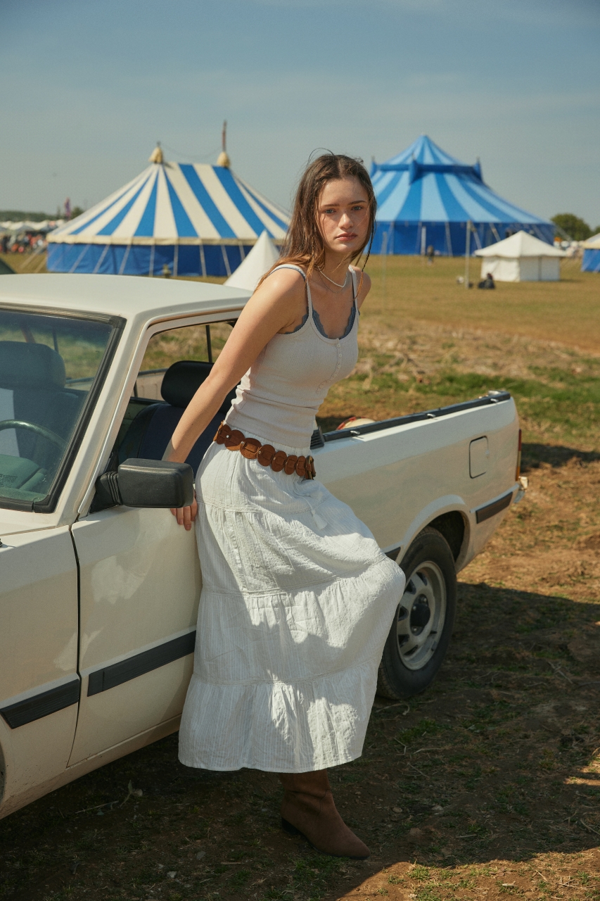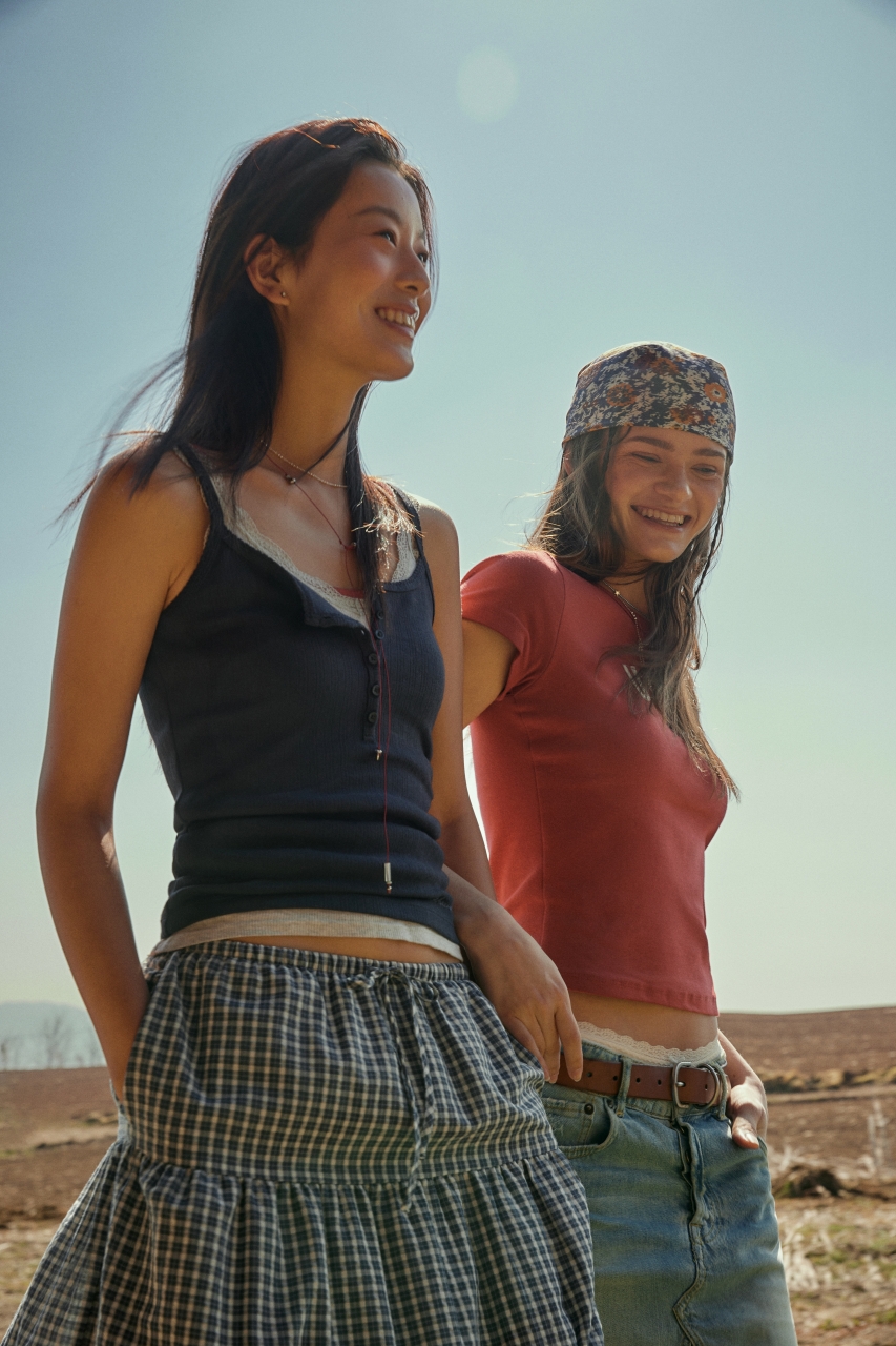이번 컬렉션에서는 편안한 실루엣을 중심으로 일상과 휴식의 경계를 허무는 아이템을 만나볼 수 있다. △누적 판매 5만 장을 기록한 ‘골지 헨리넥 반팔 티셔츠’ △빈티지한 감성의 ‘패치 티셔츠’ △‘체크 패턴 블라우스’ △도비 소재의 ‘롱 티어드 스커트’ 등 페스티벌 시즌에 활용도 높은 아이템을 선보인다.