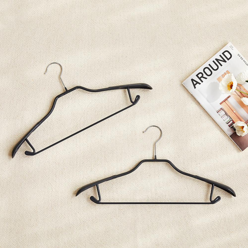 니트처럼 표면이 매끈한 옷은 옷걸이에 걸어두면 자꾸 흘러내립니다. 이럴 때 옷걸이 양쪽 끝에 노란 고무줄을 감아주면 고무줄 표면의 마찰력이 옷을 단단히 잡아줘 흘러내림을 막아줍니다. 노란 고무줄만 있으면 미끄럼 방지 옷걸이가 된답니다.