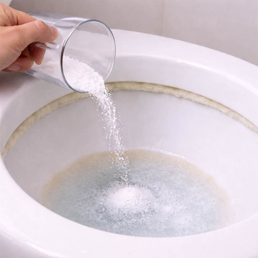 변기 물이 고여 있는 깊은 부분에 과탄산소다를 1~2스푼 넣고 뜨거운 물을 부어주세요. 이 과정에서 발생하는 산소 거품이 눈에 안 보이는 오염까지 분해합니다.
