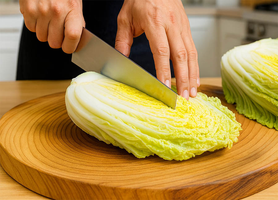 ➊ 배추를 먹기 좋은 크기로 손질해 주세요.