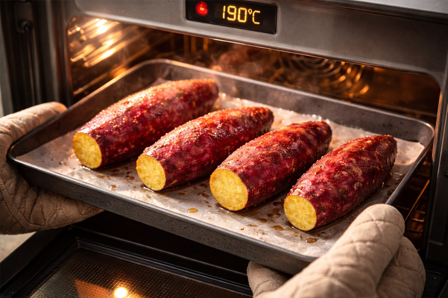 고구마가 너무 단 게 부담스럽다면 2차 굽기 전 표면에 아주 살짝 소금을 뿌려보세요. 단맛이 더 또렷해집니다.