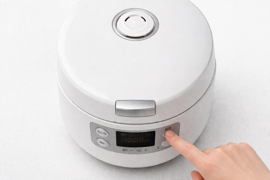 취사 버튼이 아니라 보온 버튼을 눌러 주세요. 중간에 궁금해서 뚜껑을 열어보면 안쪽 온기가 빠질 수 있으니, 닫아둔 채 기다리는 것이 좋습니다.