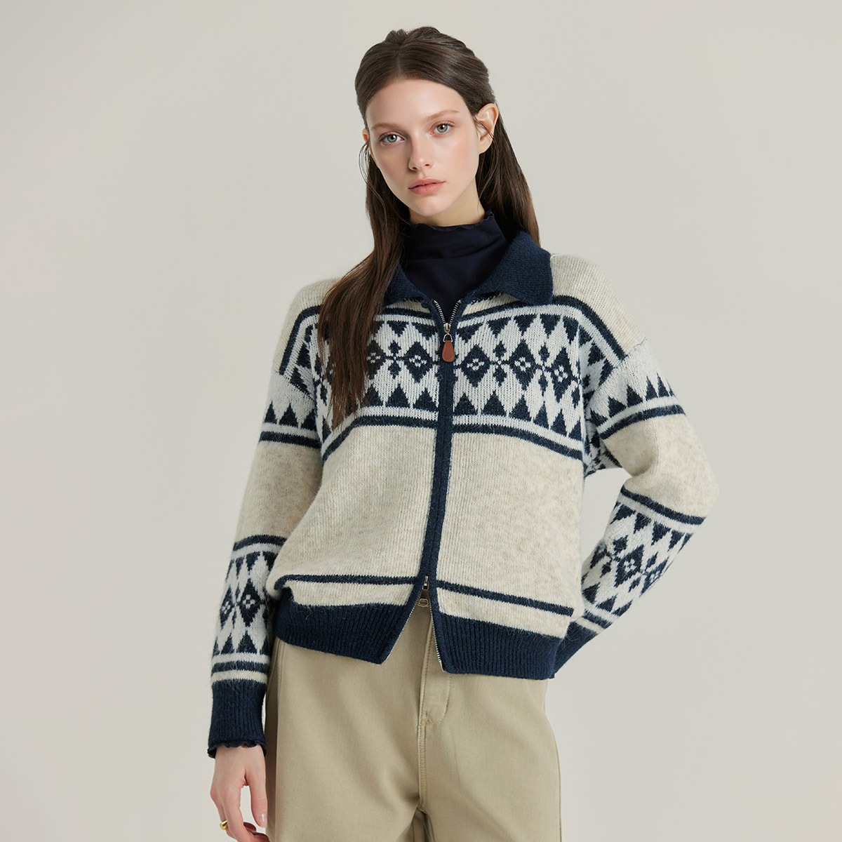 기하학적인 패턴이 특징인 '페어 아일 가디건'도 눈길을 끈다. 일명 '할머니 니트'라고 불리는 페어 아일은 그 어떤 패턴보다 고전적인 멋을 담고 있다. 별다른 액세서리 없이 해당 아이템만 걸쳐도 존재감을 낼 수 있어 최근 MZ세대 사이에서도 주목 받고 있다.