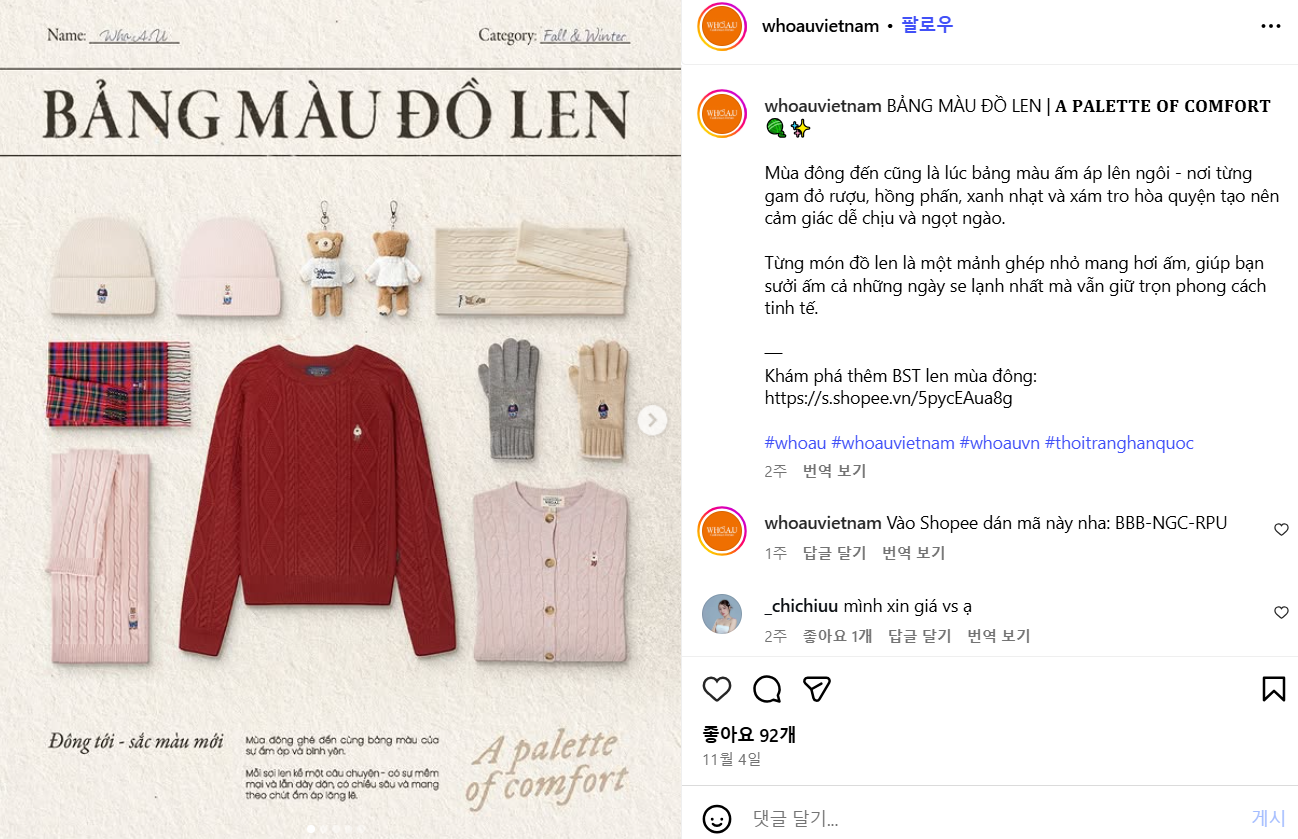 후아유 베트남 인스타그램 계정에 업로드 된 베스트 코디 콘텐츠 ⓒwhoauvietnam