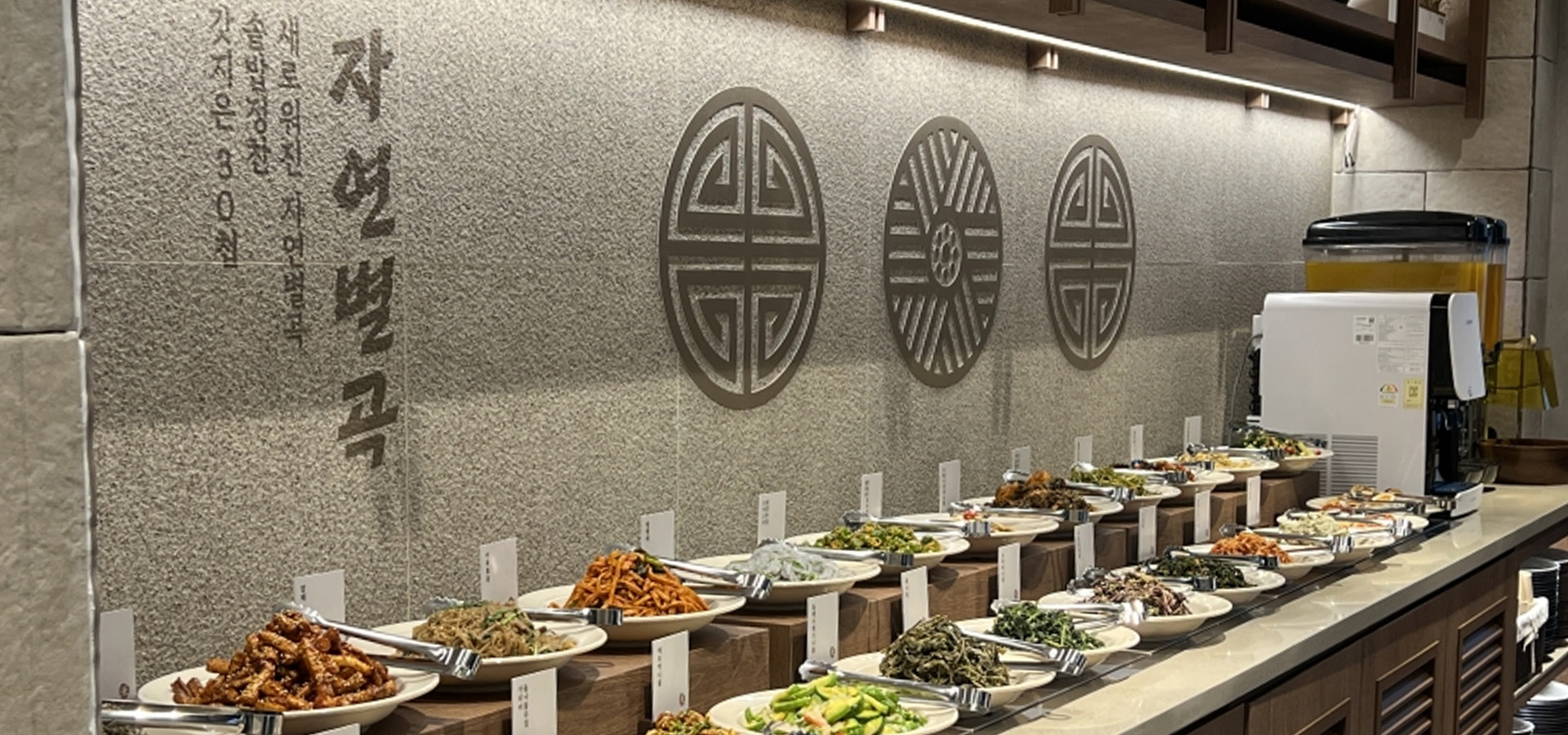 자연별곡 야탑점은 기존 자연별곡과는 조금 다른 콘셉트로 운영돼요. 자연별곡은 고객들이 한식에 기대하는 핵심이 무엇인지 고민했대요. 그 답은 바로 '밥·반찬·메인'이라는 한식의 본질이었죠. 야탑점은 이 핵심에 집중한 구성으로 뷔페를 재설계했답니다! 그래서 가격 역시 기존 매장과 다르게 12,900원으로 책정한 거예요.