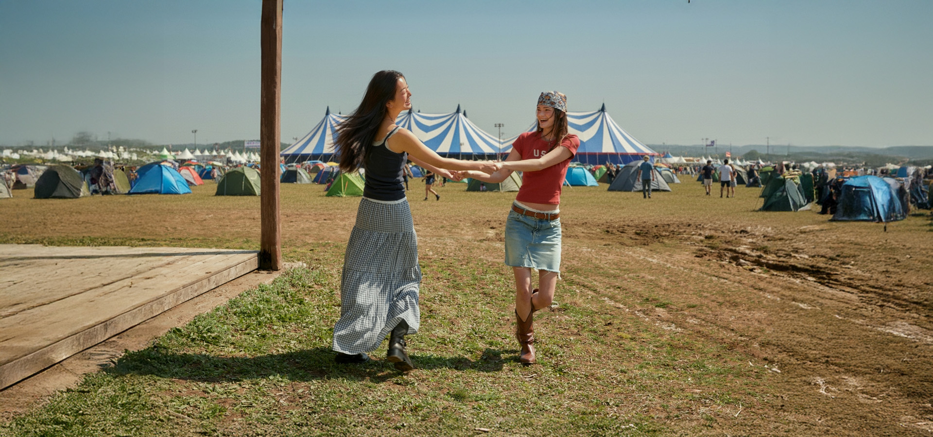 페스티벌룩이 하나의 패션 장르로 자리 잡은 건 2000년대 영국 글래스톤베리 페스티벌로 거슬러 올라가요. 케이트 모스, 알렉사 청 같은 패션 아이콘들이 페스티벌 현장에서 선보인 스타일링이 미디어를 통해 전 세계로 확산되면서예요. 특히 케이트 모스는 특별히 멋을 부리기보다는 스터드 디테일의 벨트와 백처럼 본인의 취향이 담긴 피스들을 자연스럽게 활용하며 그런지하고 시크한 스타일을 완성했어요. 지금의 미니멀 페스티벌룩 트렌드도 사실 그 연장선에 있다고 볼 수 있죠.
