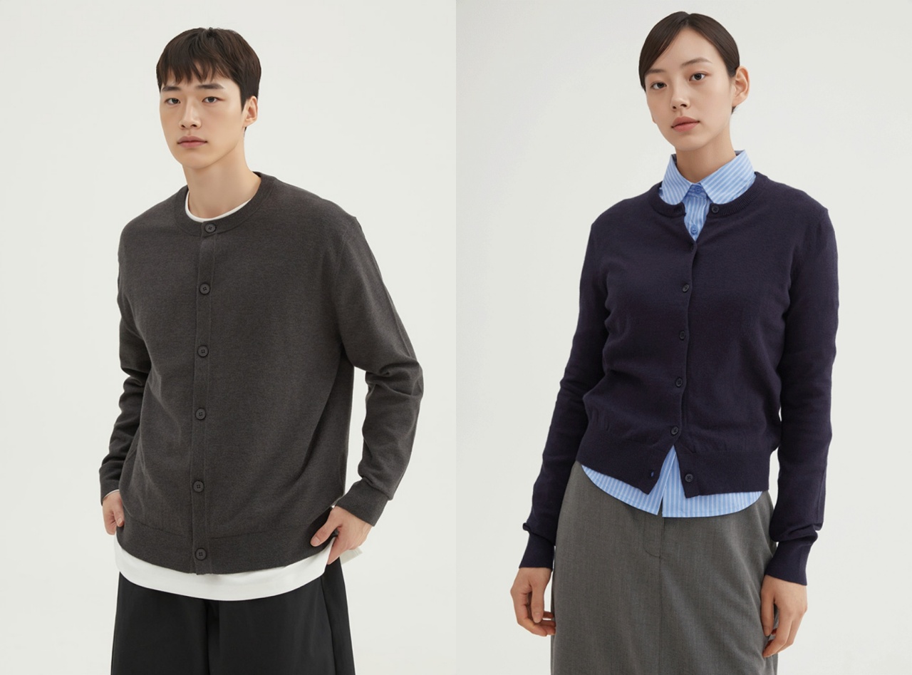 카디건 유형에서는 △아이보리 △브라운 △차콜 △멜란지 그레이 △오트밀 멜란지 △로얄 블루 등 다채로운 컬러감의 아이템이 준비됐다. 다양한 상의 아이템과 레이어드 및 스타일링에 포인트를 더하기 용이하다.