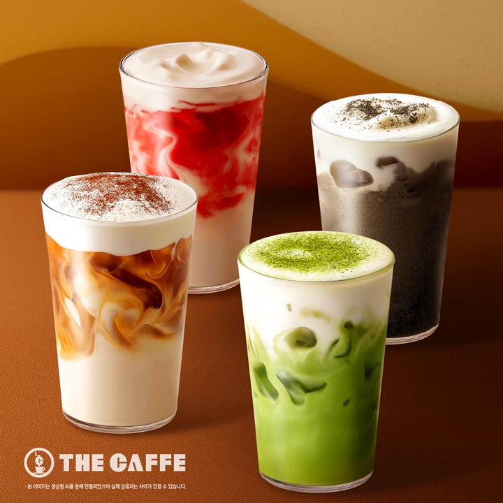 이번 신메뉴는 ▲시나몬 크림 카페라떼 ▲말차 크림라떼 ▲딸기 크림라떼 ▲흑임자 크림라떼로 구성되며, 더카페 특제 화이트 크림을 활용해 달콤하면서도 각 재료 고유의 맛을 살렸다.
